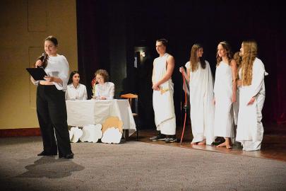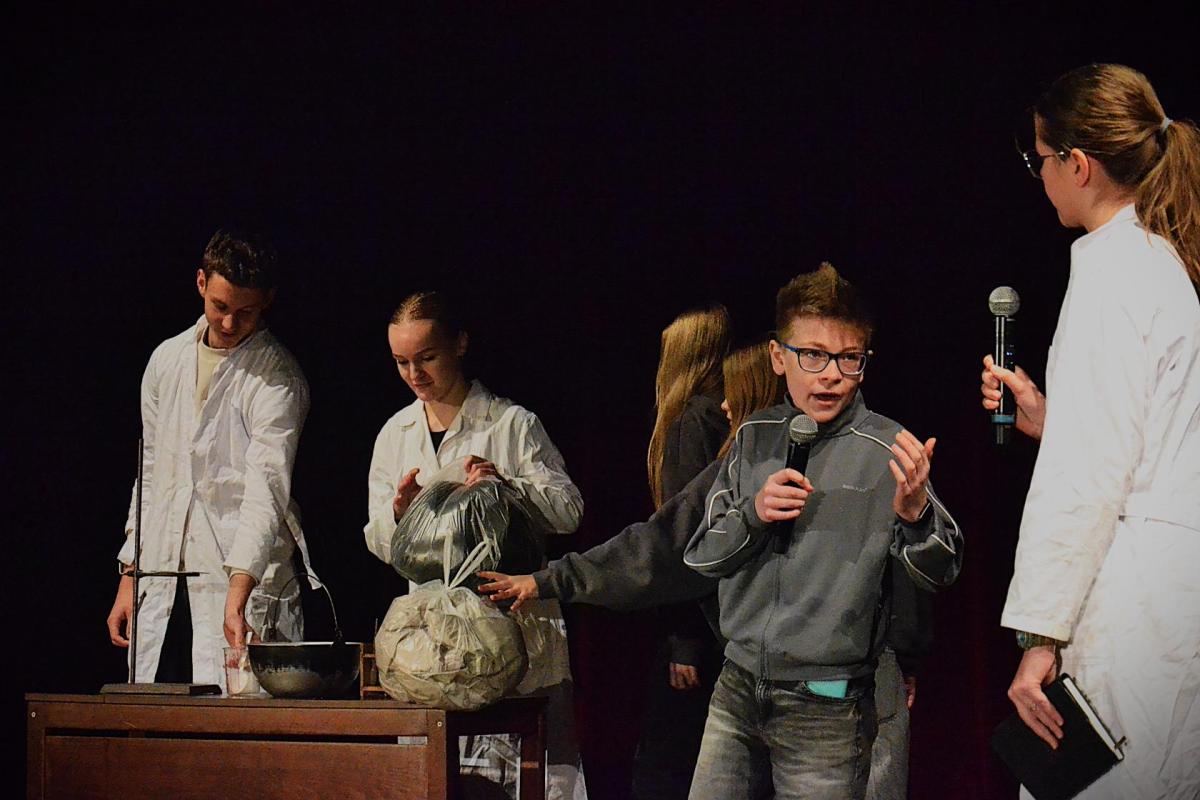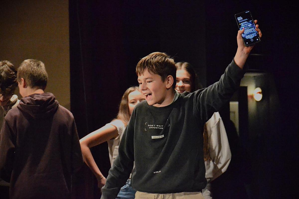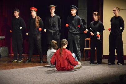 Ostatní žáci školy spontánně tvoří ve skupinách s cílem scénického zpracování tématu v omezeném čase (mezitřídní vylosované skupiny žáků (17 skupin po 13 žácích) během jednoho dne připraví pětiminutový výstup na vylosované téma (letos významná osobnost), který prezentují před ostatními žáky školy. Každé skupině jsou k ruce 1–2 nalosování učitelé. Důraz se klade spíše na proces tvorby, než na samotný výsledek. Následně se skupiny sejdou ke zpětné vazbě a zhlédnutí záznamu.)