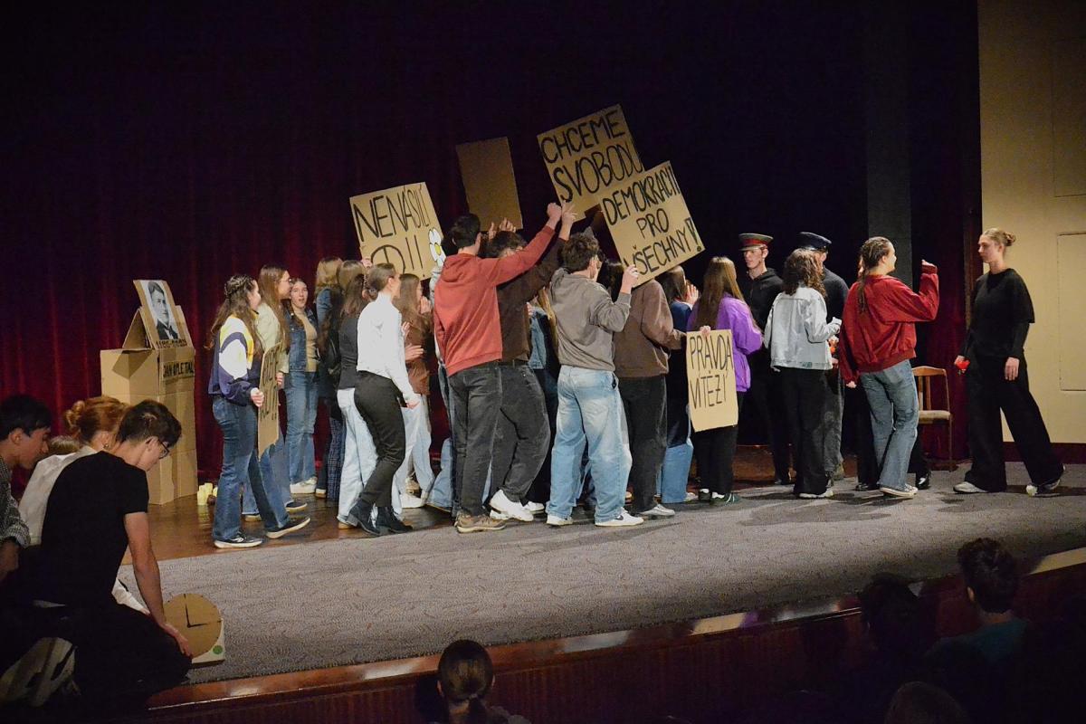 Projektu Oslavy Dne studentstva (letos od středy do pátku 19.–21. 11. 2025) se účastní všichni žáci nematuritních tříd, všichni učitelé (vyjma třídních 4. ročníků), garantem projektu je Lenka Janyšová.