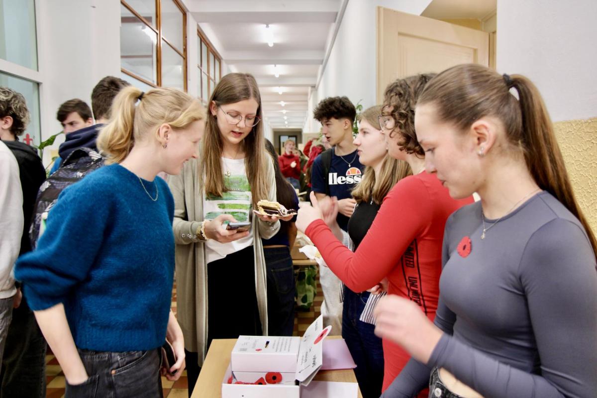 V úterý 11. listopadu 2025 jsme pořádali v prostorách gymnázia už tradiční sbírku ke Dni válečných veteránů. Proto bylo možné si koupit symbol úcty k nim – vlčí mák.