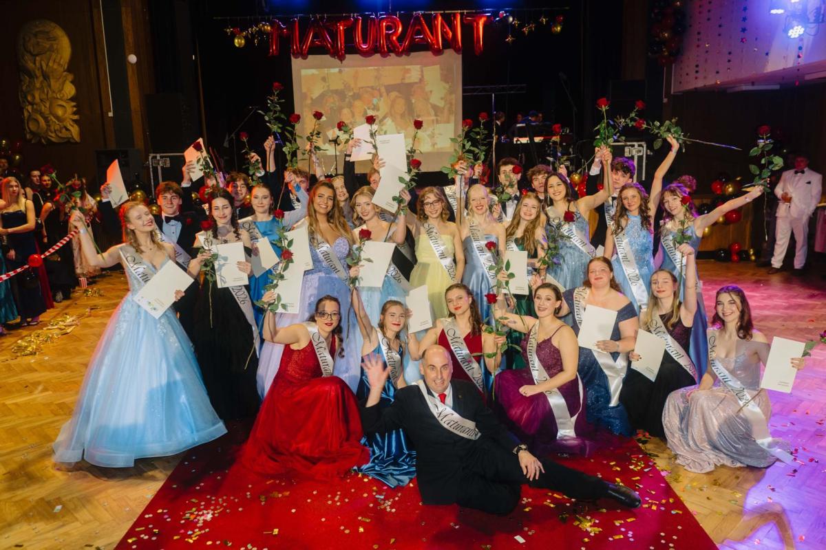 Maturitní ples 21. listopadu 2025 roztančili ústecký kulturák maturanti našeho gymnázia.