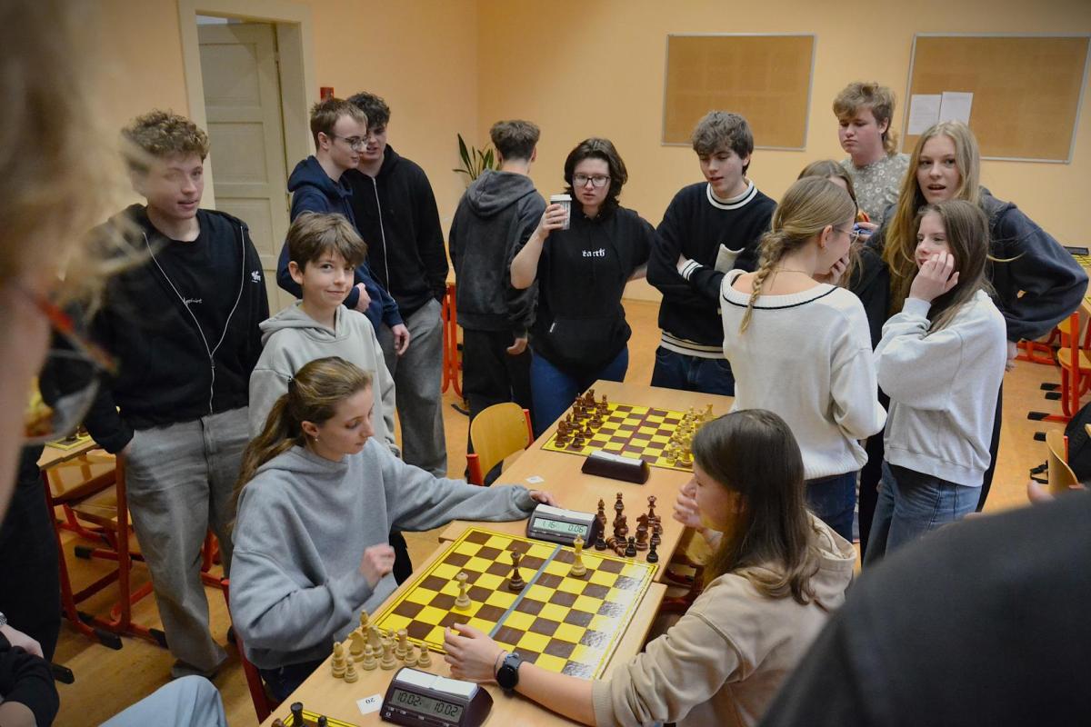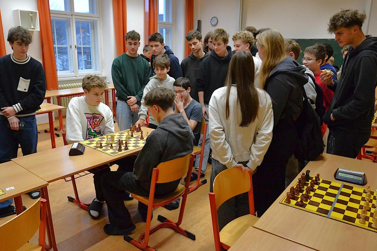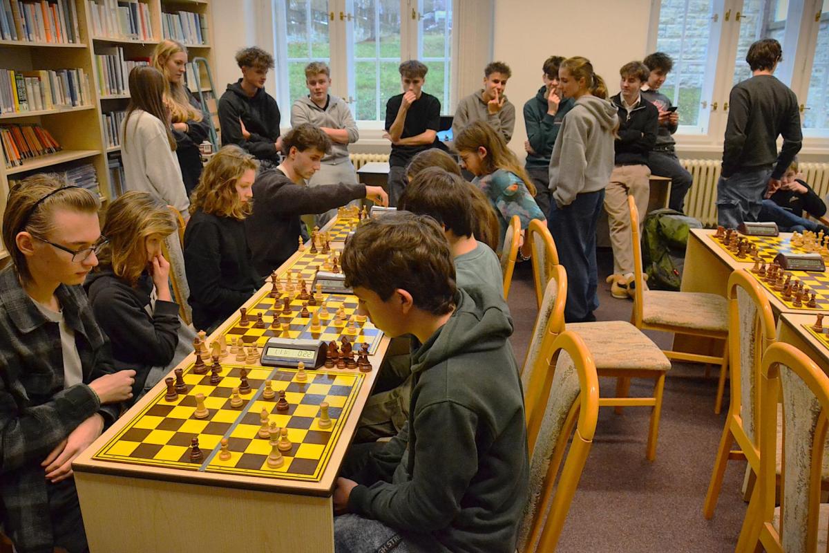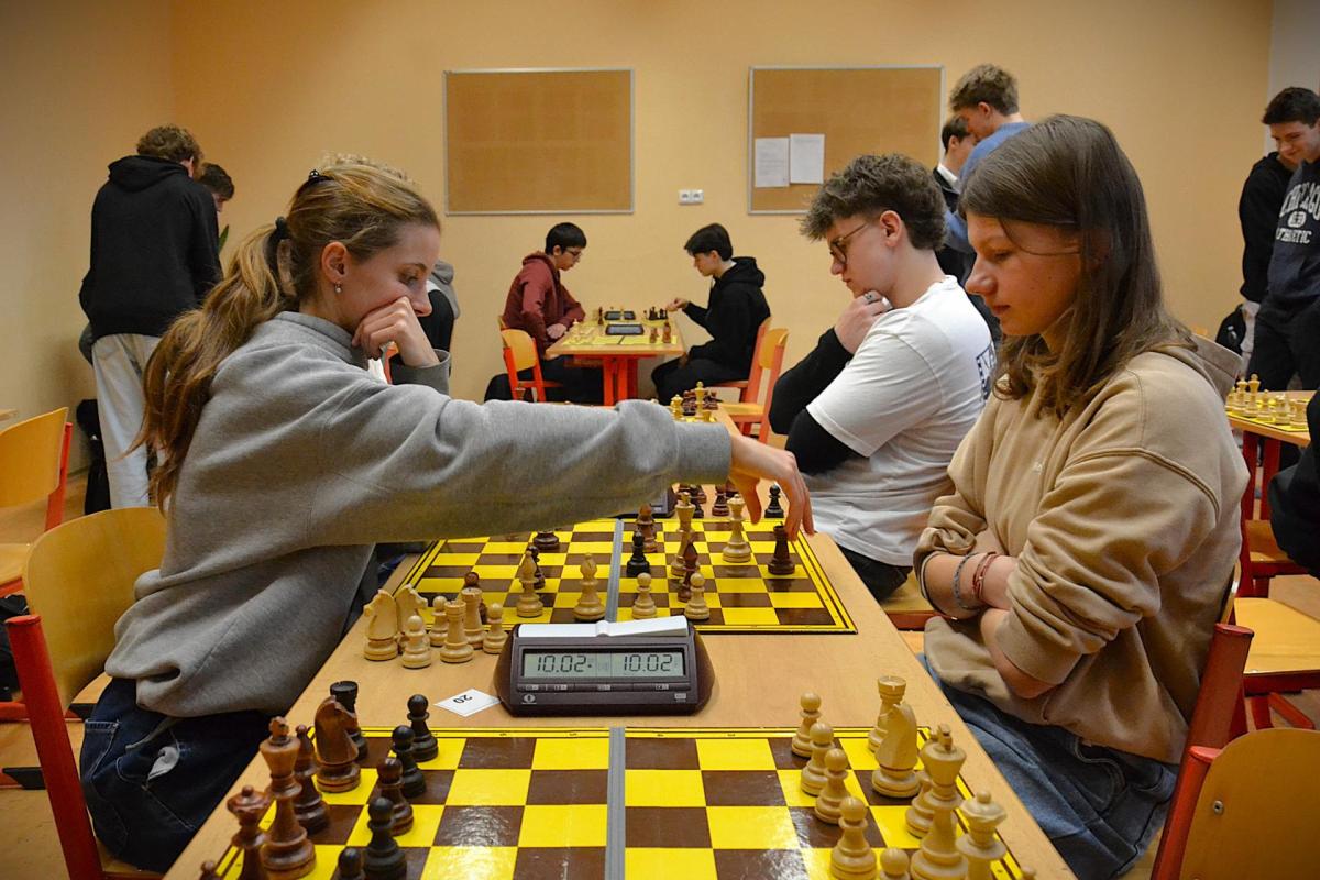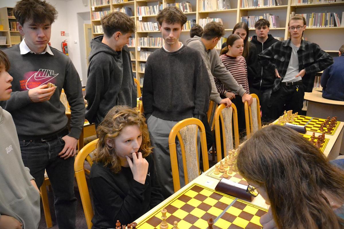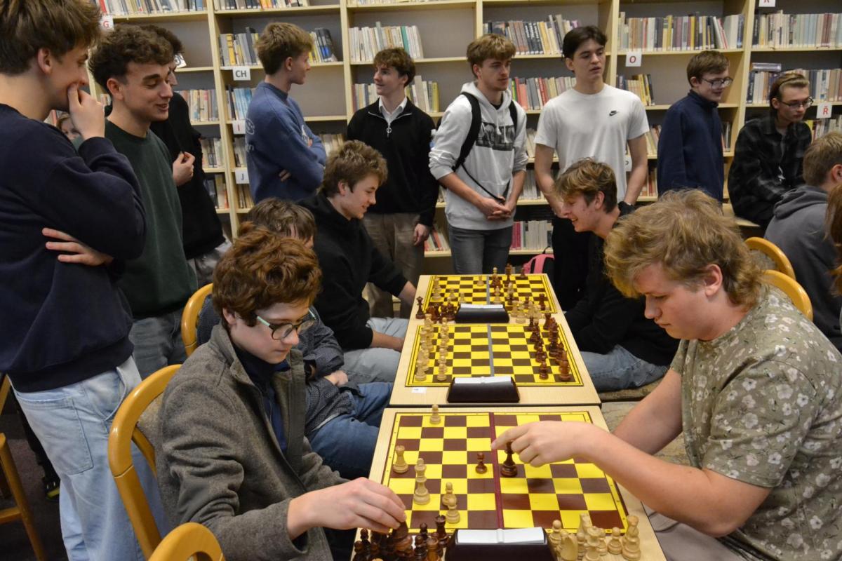 V úterý 16. 12. 2025 se sešlo v knihovně a blízkých učebnách hned 63 hráčů, což je stejně, jako při rekordní účasti v r. 2015. Hrálo se 9 kol, tempo 10 minut na partii + 2 sekundy za tah, to je dost rychlé.