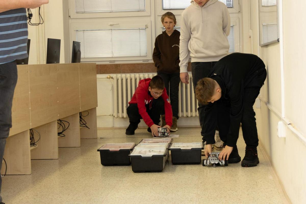 Ve středu 26. 11. 2025 se někteří chlapci z tercie a kvarty zúčastnili soutěže v robotice a kybernetice pro základní školy S-ROBOT v Pardubicích. Našim týmům se ve velké konkurenci vedlo skvěle.