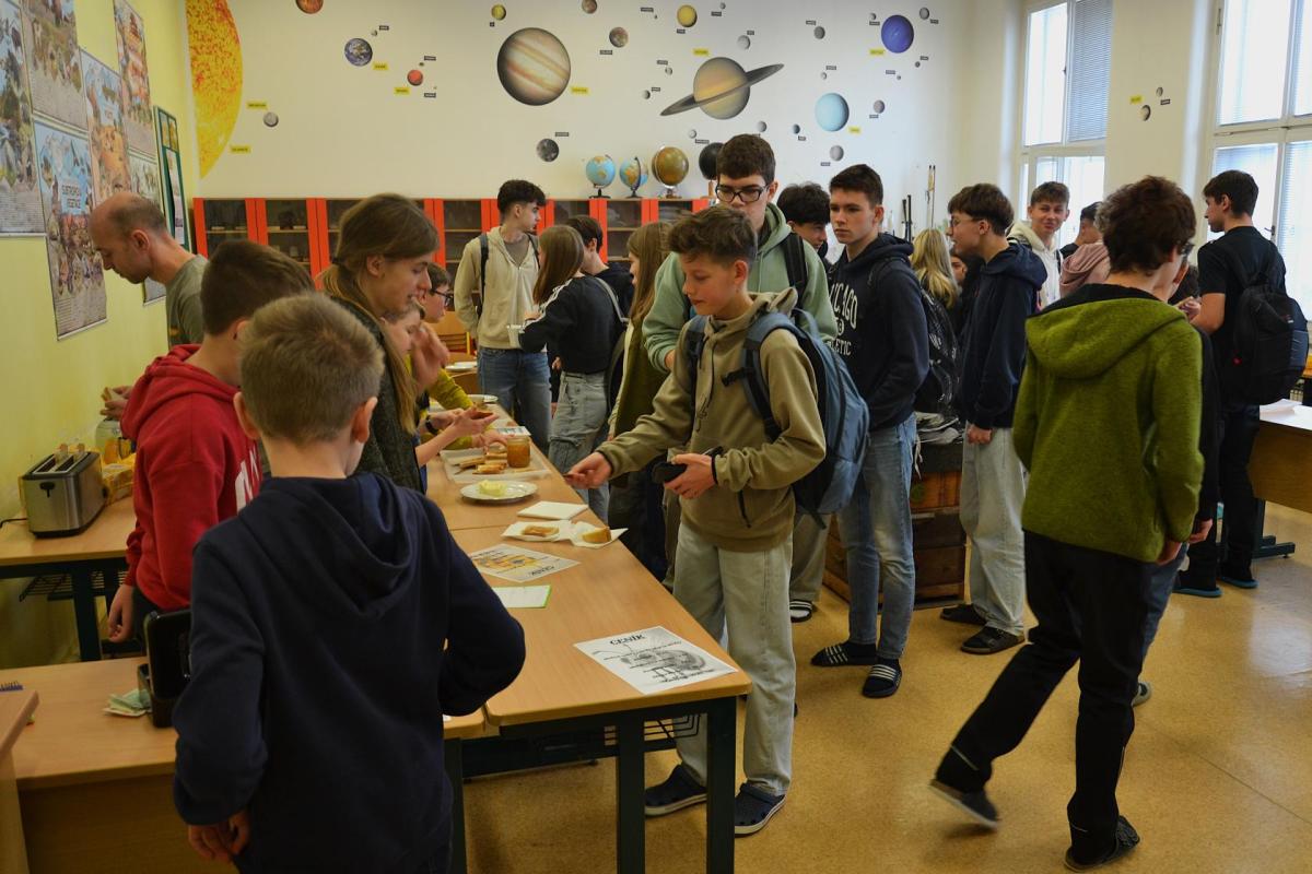 Letošní ročník Medového pátku se uskuteční tento týden 28. 11. 2025 o velké přestávce v učebně BiZe. Tradičně se můžete těšit na vaše oblíbené medovomáselné tousty, zázvorový čaj s medem a další dobroty. V pátek si tedy do školy neberte svačinu, jen pár drobásků. Rádi vás obsloužíme.