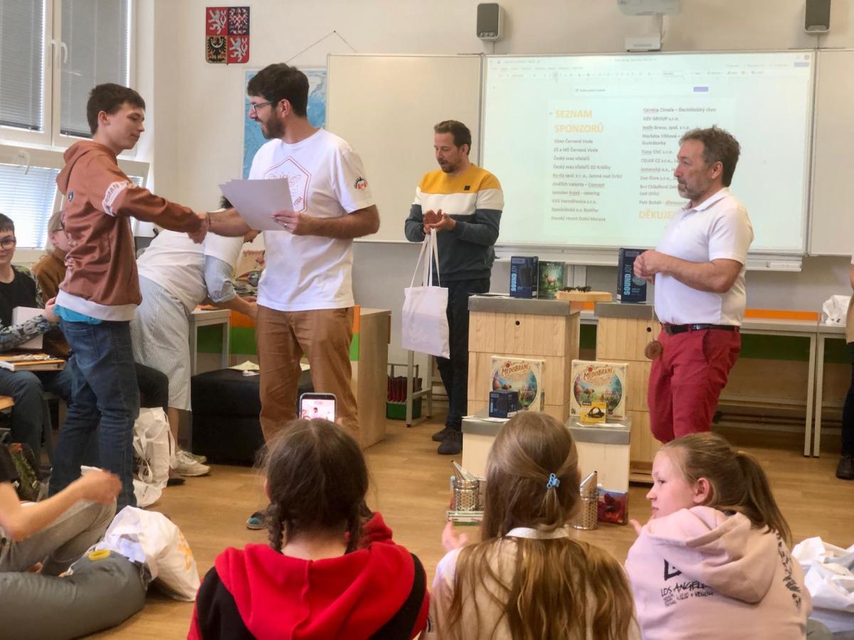 Po obědě pak pro ně měli kamarádi z Červené Vody nachystané drobné zábavné aktivity v areálu školy. Následně proběhlo slavnostní vyhlášení výsledků. Přestože všechny dílčí výsledky ještě nemáme k dispozici, již nyní víme, že výjimečného úspěchu dosáhl Jakub Poslušný (2.B), který se umístil ve starší kategorii na 3. místě. Stal se tak náhradníkem pro postup do celorepublikového kola v Nasavrkách.