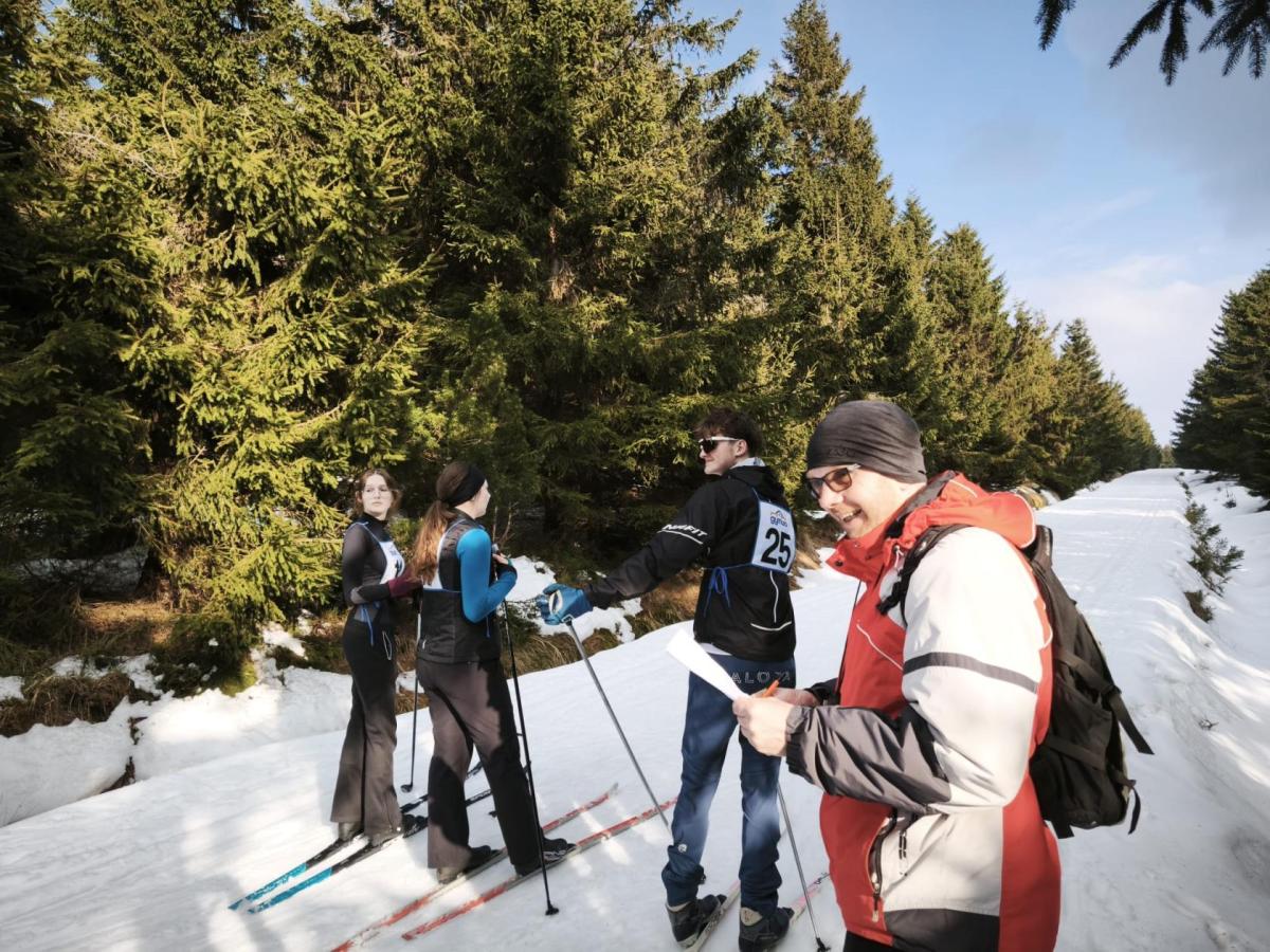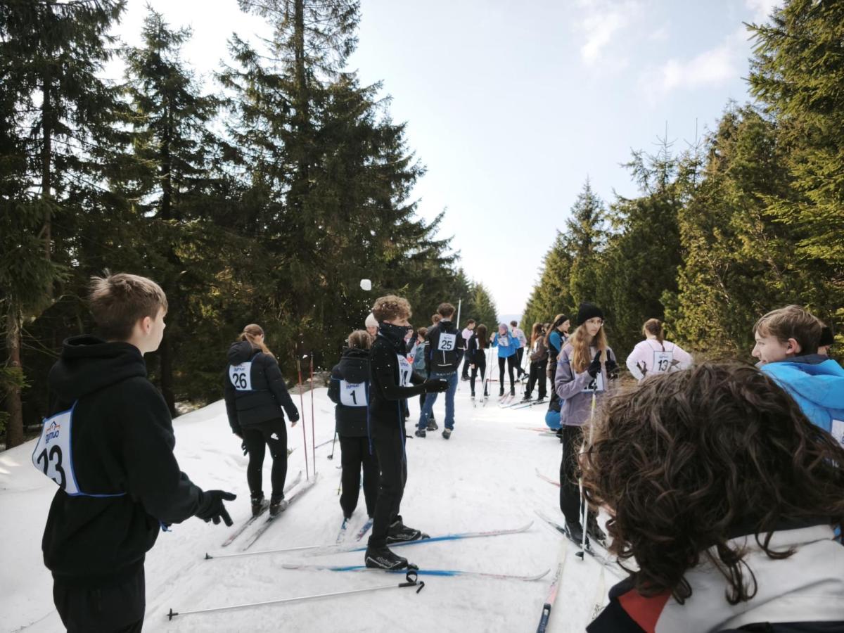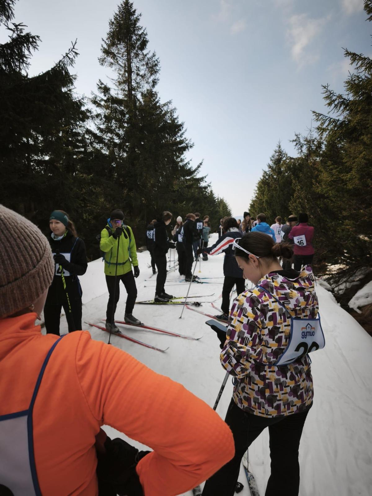 Slunečno, závody na běžkách, nálada dobrá...