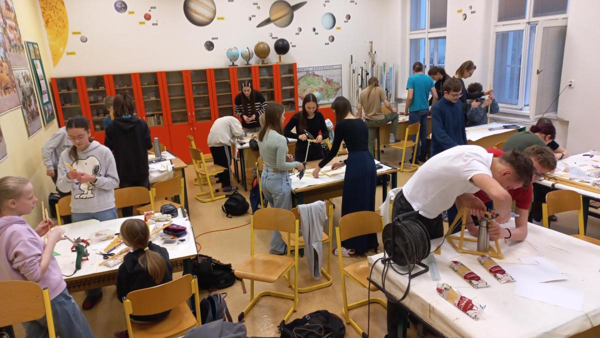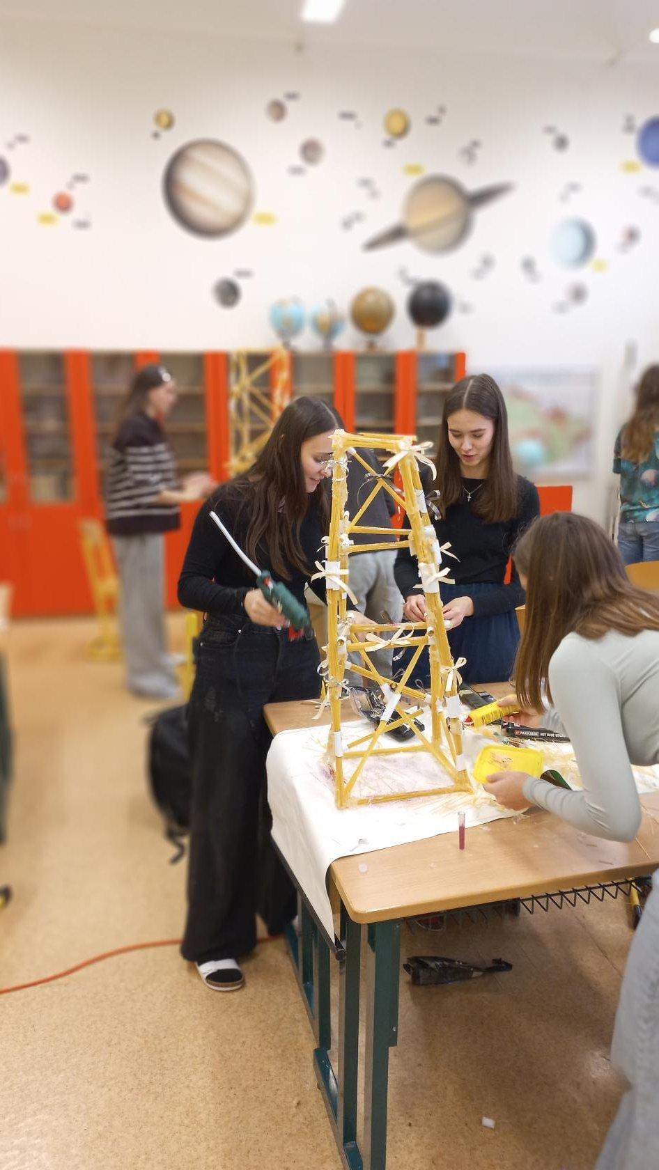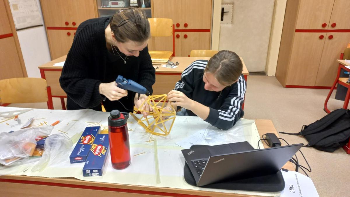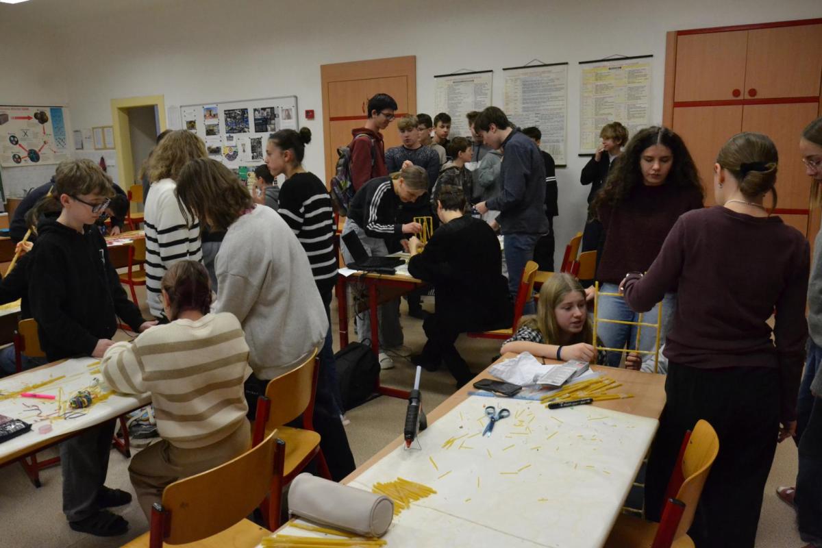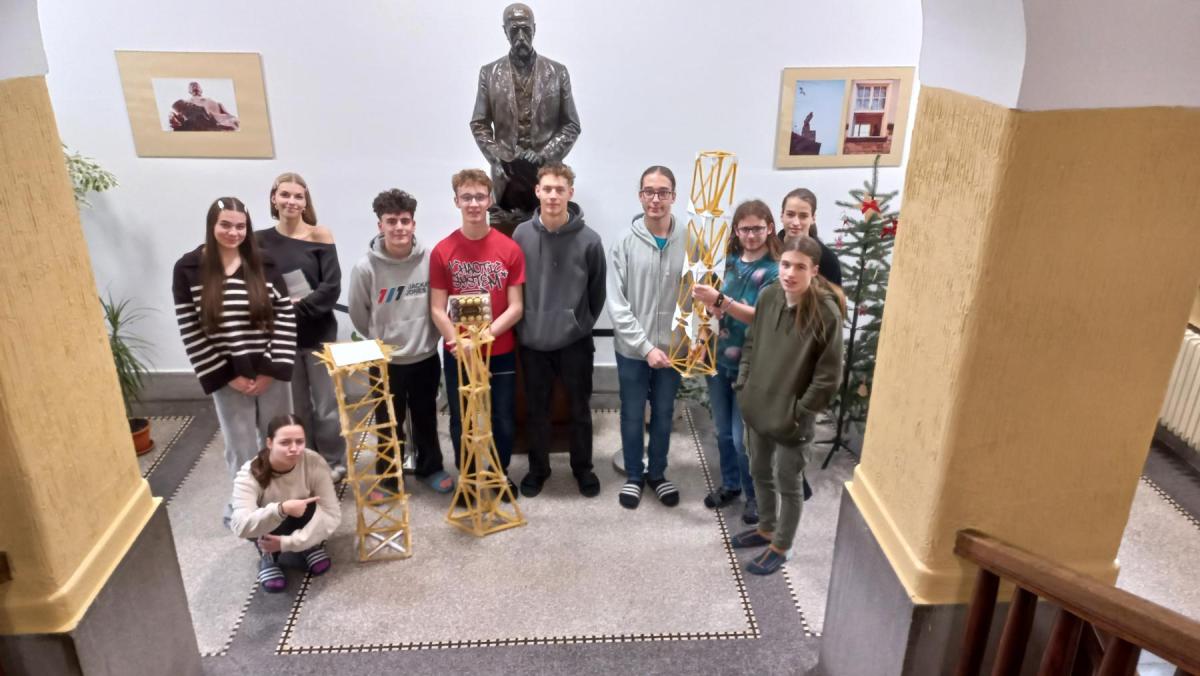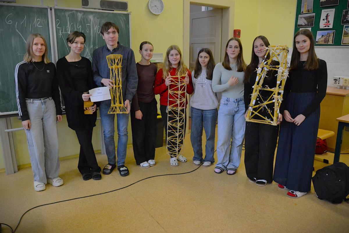Základním úkolem letošního ročníku konstruktérské soutěže bylo z maximálně 3 běžných balíčků špaget postavit co nejvyšší věž, která unese 5 kg. Z 15 přihlášených týmů se nosnost podařilo splnit 14. Tým „Pasťáci“ dívek z maturitní 8. B mířil s výškou do rekordních 128 cm, bohužel však při zatížení 4,5 kg se jejich konstrukce začala hroutit. Děvčata však zaslouží však cenu za odvahu, že mířila opravdu vysoko.