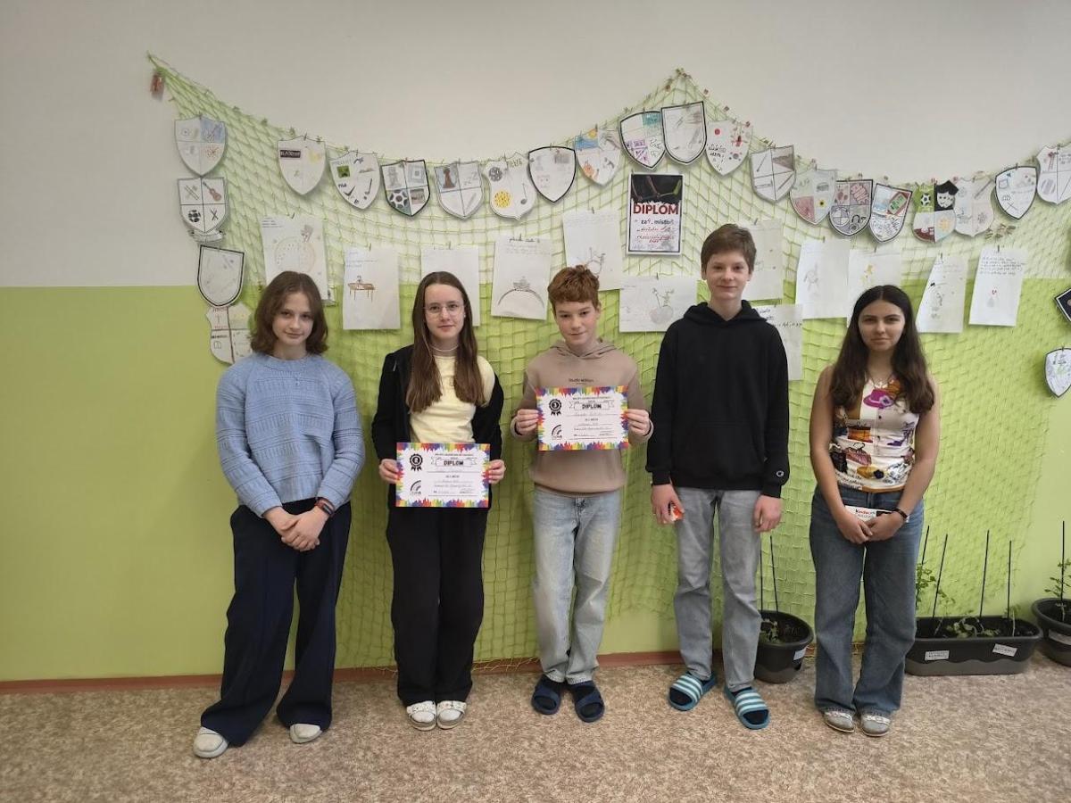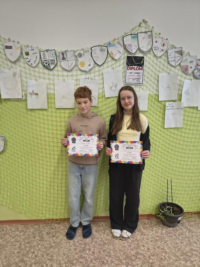 Výrazného úspěchu dosáhli naši žáci také v soutěži Matematický klokan. V kategorii Benjamín obsadil Dominik 1. místo v okrese (120 bodů) a Antonie získala 2. místo (115 bodů).